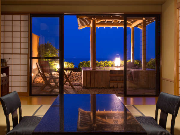 夜の貸切露天風呂は海の前で季節的に寒いと思いましたが源泉掛け流しでちょうど良く気持ち良かったですね♨️