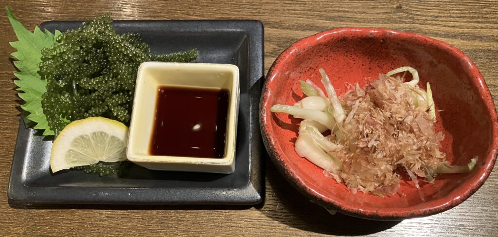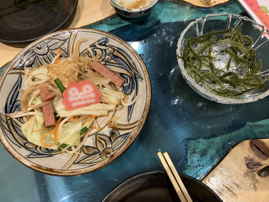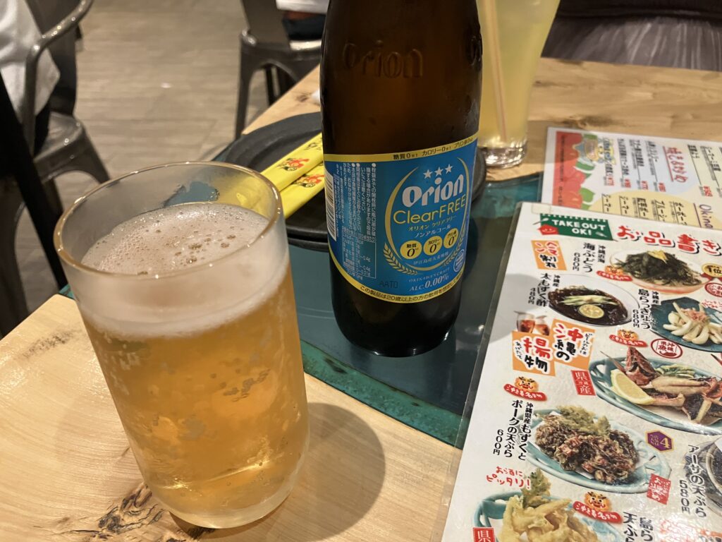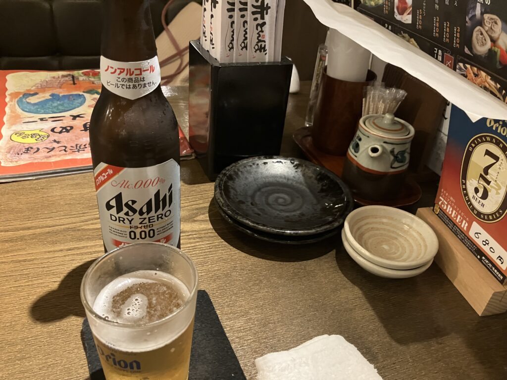 空港から程近いホテルに到着をして少しゆっくりしてからお互いにノンアルですが近くの居酒屋に沖縄のおつまみを食べに行きました。
