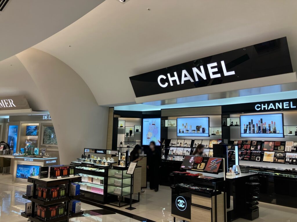 お客様はシャネルへ私は以前収集をして飾るほど好きでした香水を見てました。