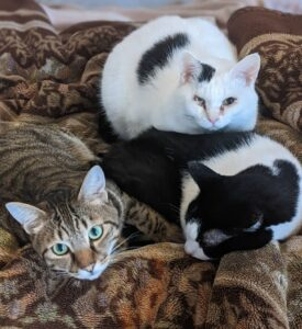 そして天国から家に戻ると、いつも通り家族(😺たち)が迎えてくれました。