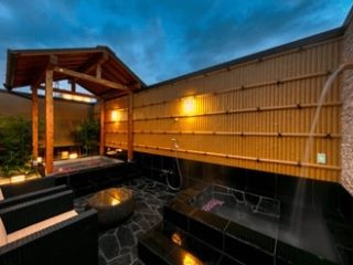 貸切露天風呂。屋上にあって打たせ湯もあります。予約制で無料で利用できるんですよ。