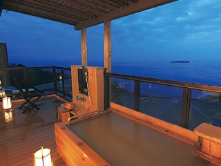 お客様と網代にある宿へ。全室に露天風呂が付いていました。