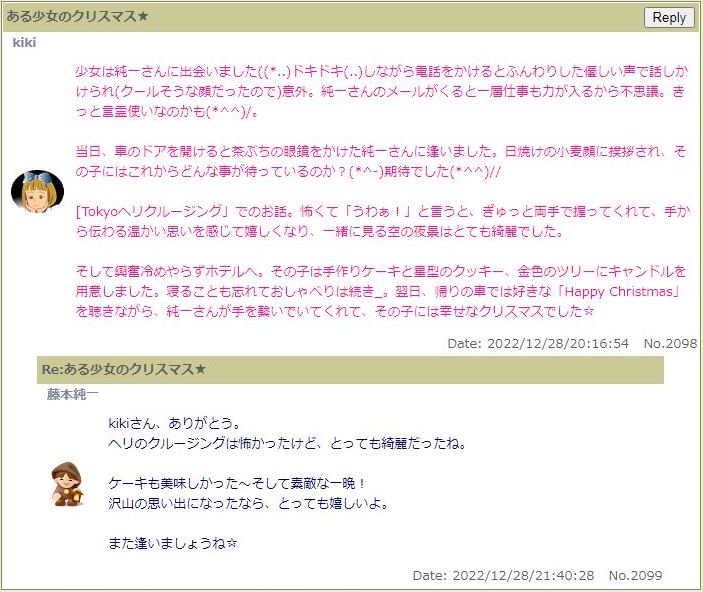 彼女から昨年、掲示板には感想を頂いていたのに、すみません。