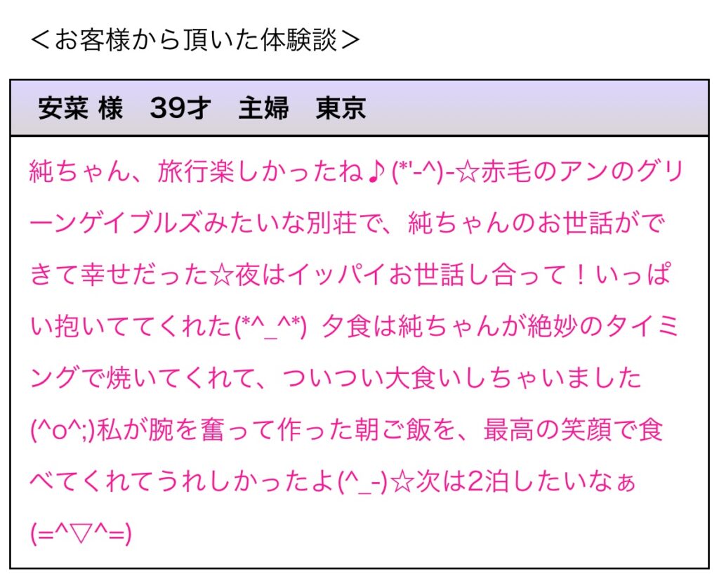 軽井沢への旅行 2025 2025/9/1 ホスト藤本純一 藤本です。二回目のお客様と軽井沢へ行って来ました。 バーベキューやったりして、のんびり過ごした二日間でした。 彼女から頂いた感想です。 詳しくは「オフィシャルサイト」から見て下さい。 藤本純一