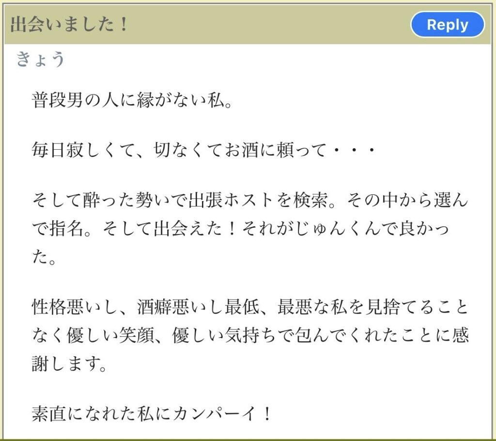 初めてお逢いした方です。多くの出張ホストの中から選んでくれて嬉しいです。